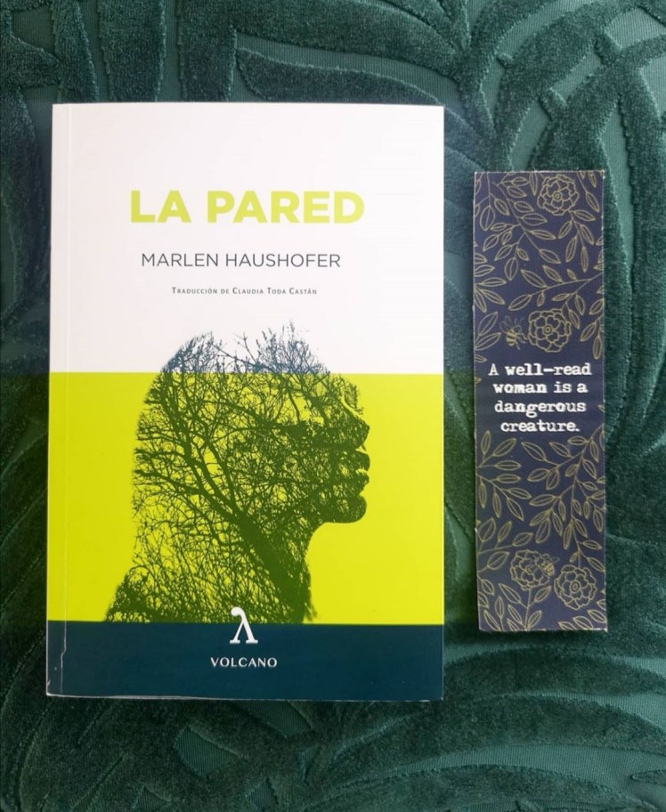 Esta novela fue publicada en 1963, la autora, Marlen Haushofer, falleció en Viena en 1970. No puedo evitar pensar que nos hemos perdido un puñado de buenos libros debido a su muerte prematura. La protagonista del libro (de la que no conoceremos el nombre) se va de vacaciones a visitar a su prima Luise y su marido Hugo a la casa que tienen en el campo en los Alpes. Una mañana se van al pueblo y no vuelven. Inquieta va en su búsqueda pero se encuentra con una pared gigante transparente que le impide avanzar. Las personas y animales que se ven al otro lado parecen congelados, parados en el tiempo para siempre. Todo nos hace pensar en una catastrofe o en el fin del mundo, aunque nunca sabremos qué pasó realmente. A nuestro personaje, separada del mundo por esa pared no le queda otra que volver a la casa. Empezarán dos años de supervivencia en la naturaleza salvaje, racionando sus provisiones y buscando otras. Compartirá su vida con Lince, el perro del antiguo guarda, una gata con mucho carácter y una vaca, Bella, que le dará leche además de compañía. Podría calificar este libro de distopía. Pero prefiero decir que es una oda a la naturaleza (como todo lo que publica @volcano_libros) y a la supervivencia. A cómo somos capables de sobrevivir y hacer cosas que en circunstancias normales de nuestra vida acomodada nunca se nos habría pasado por la cabeza, ni tan siquiera nos hubiéramos creído capaces de llevar a cabo. La protagonista escribirá un diario contando su día a día. Con la esperanza de que alguien lo lea algún día. Reflexionará sobre el tiempo, la condición de la mujer en su vida pasada y cómo ahora se siente más libre, fuerte y sin ataduras. También sobre la soledad y el peso de los recuerdos en los que solo se detendrá de forma rápida para no ser invadida por la melancolía. Sus hijas junto con su vida anterior se quedaron al otro lado de la pared. La dura vida en medio de todo y de nada, el paso de las estaciones, hacer provisiones y trabajar duro para la llegada del invierno, el apego a los animales, sus solos compañeros. He disfrutado mucho de esta «robinsonada feminista» como se ha dicho en El País.